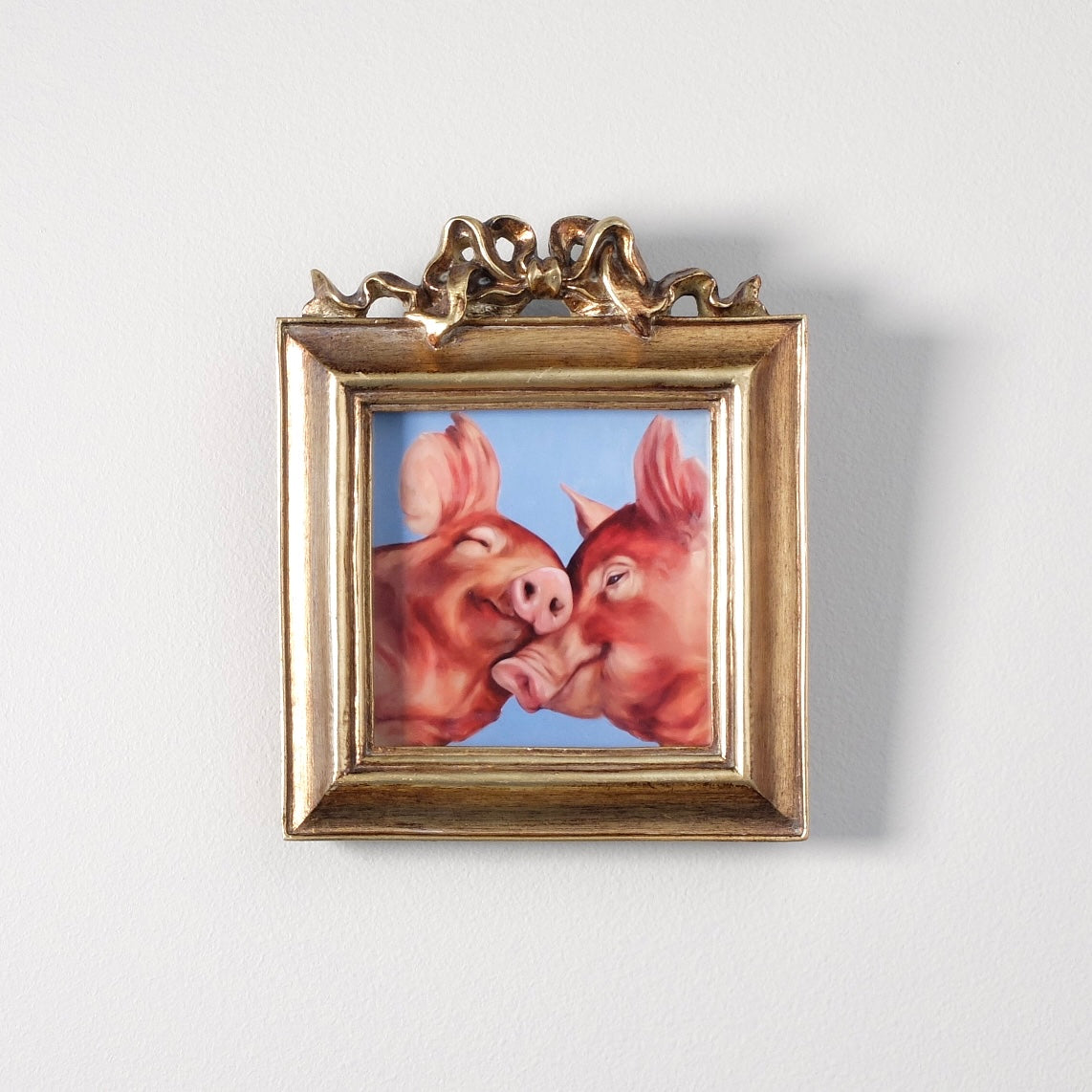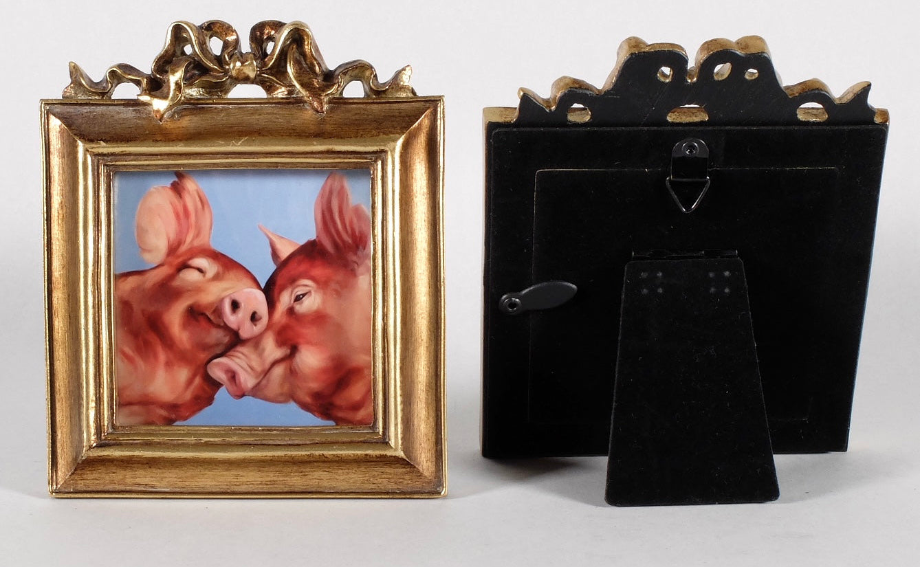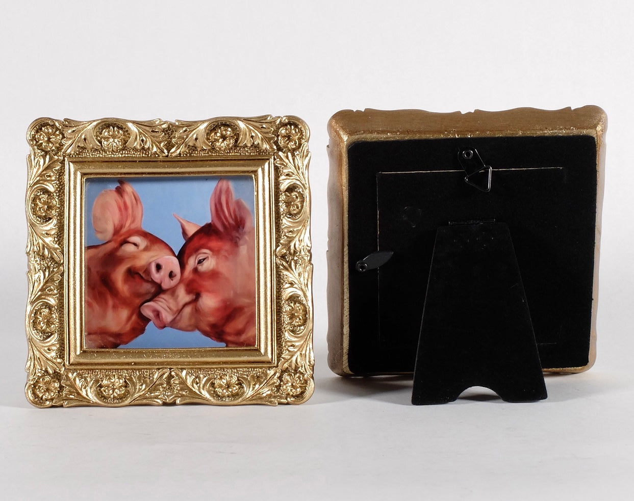 These mini framed prints are roughly 4"x 4" (varying slightly depending on the frame style). These can sit on a tabletop/shelf or can hang on a wall.