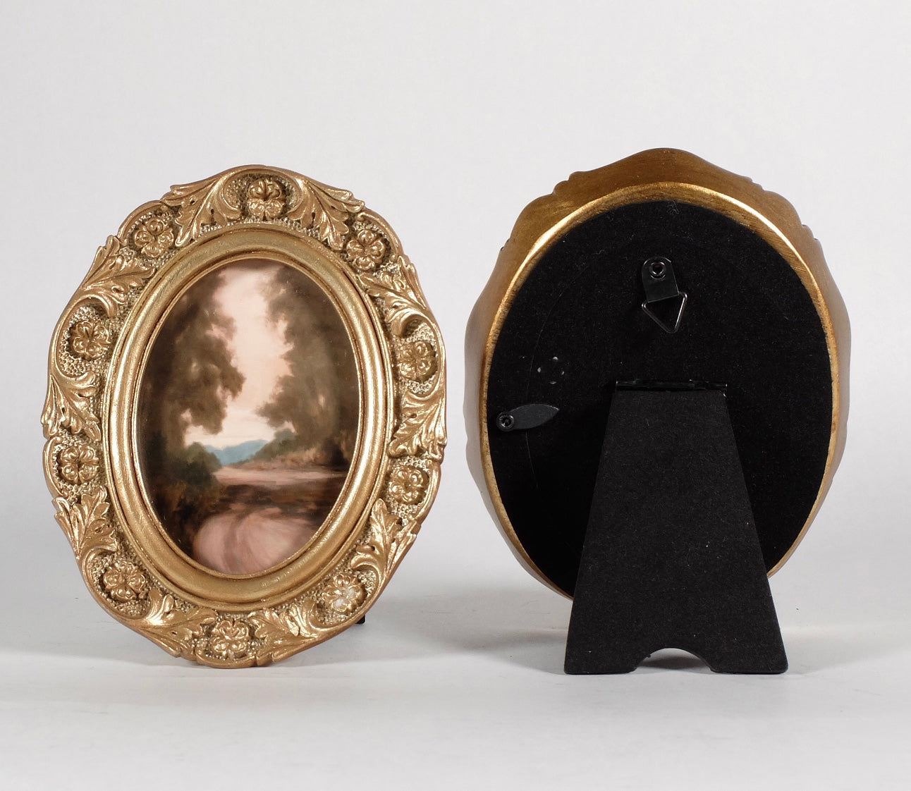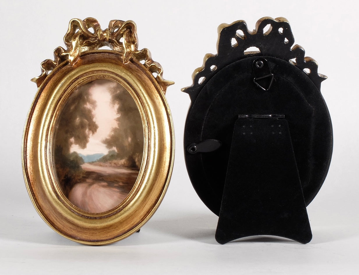 These mini framed prints are roughly 4"x 5" (varying slightly depending on the frame style). These can sit on a tabletop/shelf or can hang on a wall.