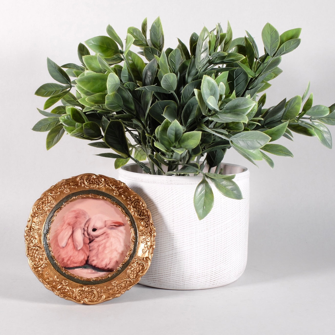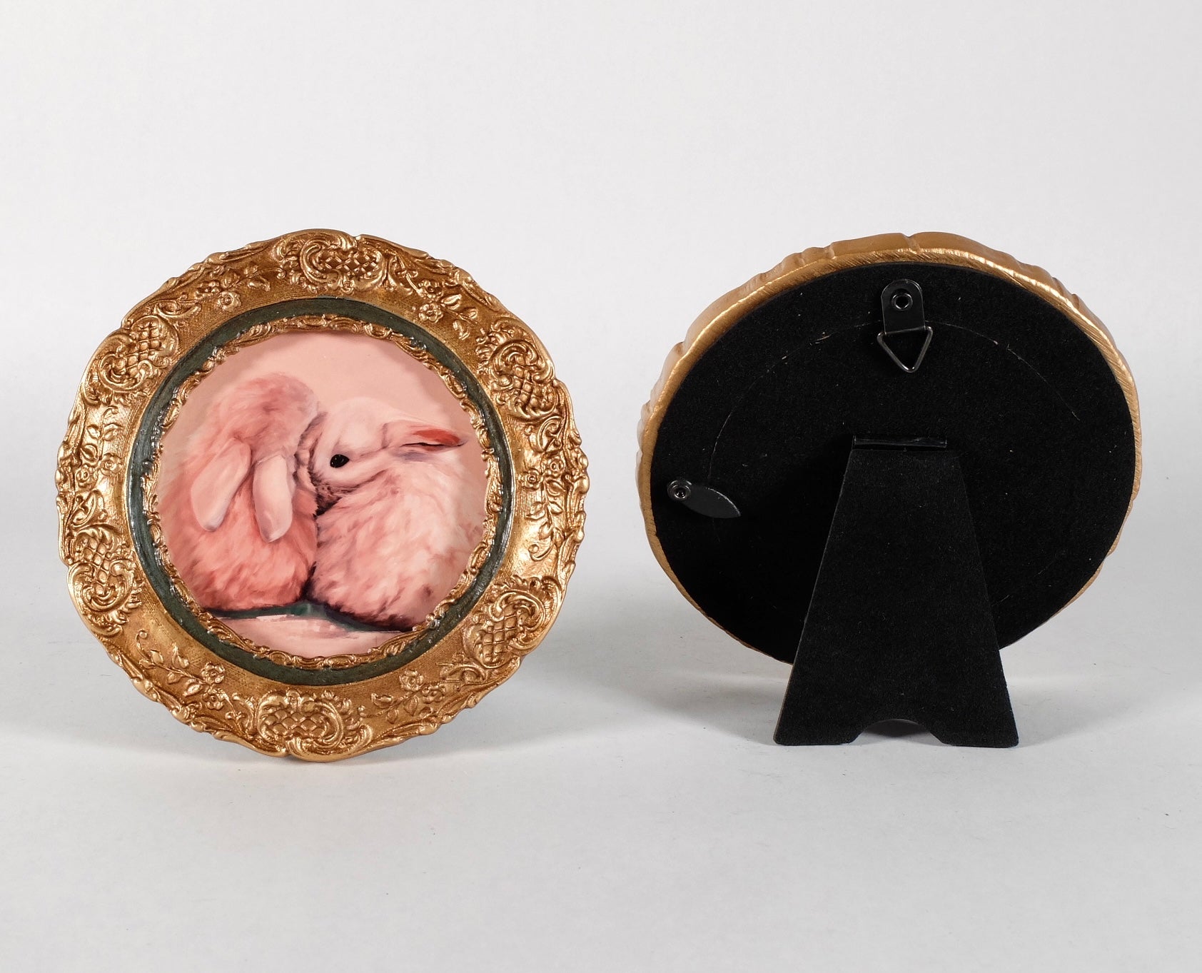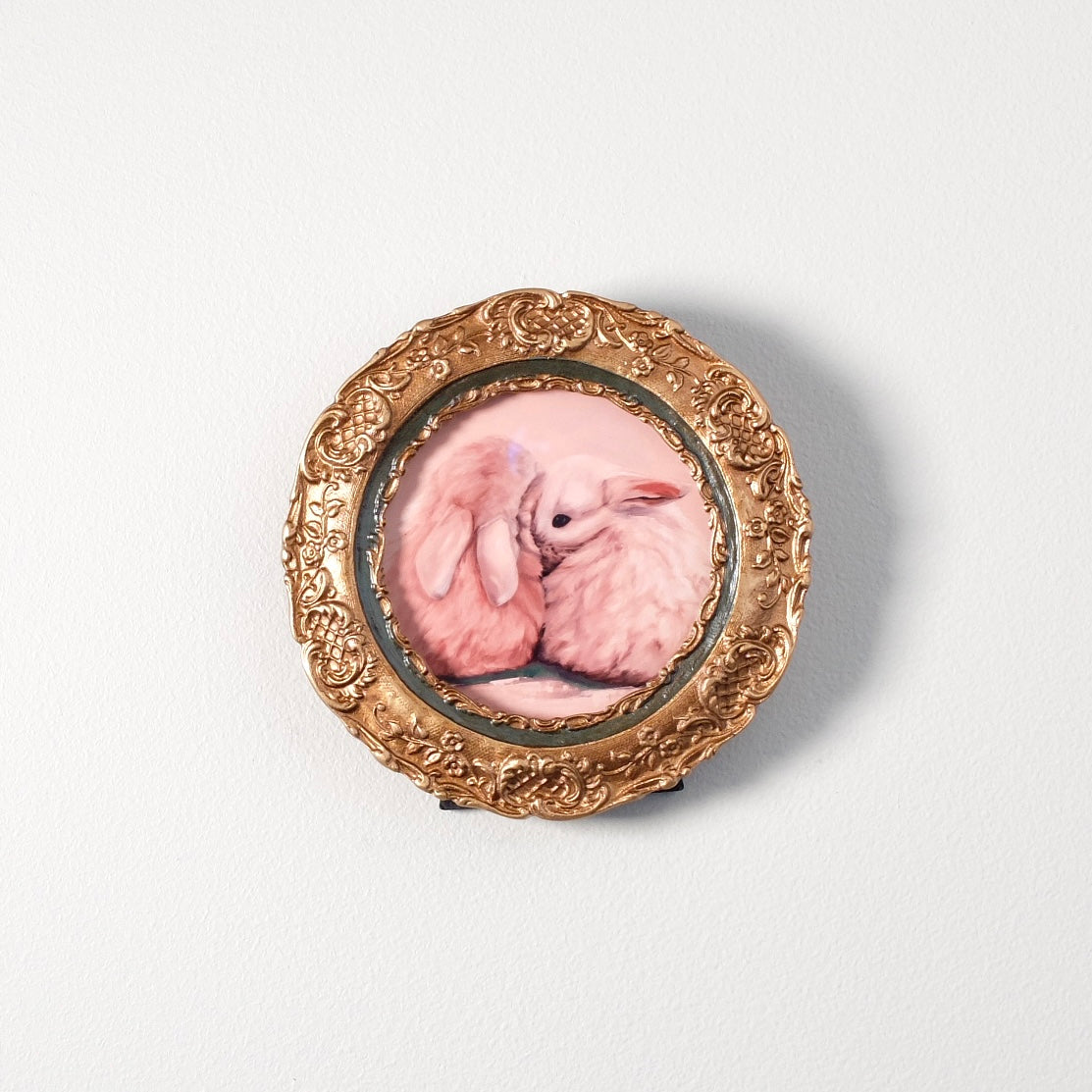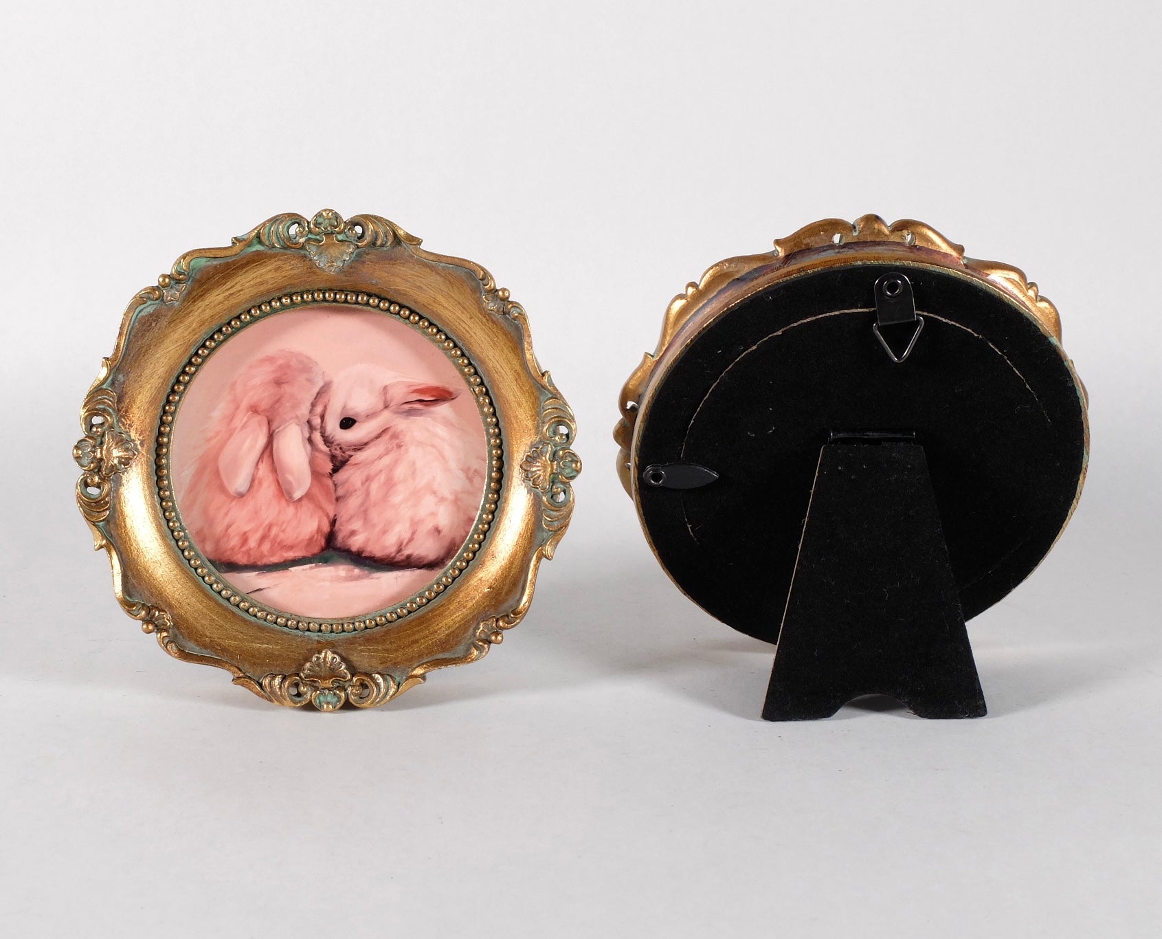 These mini framed prints are roughly 4"x 4" (varying slightly depending on the frame style). These can sit on a tabletop/shelf or can hang on a wall.