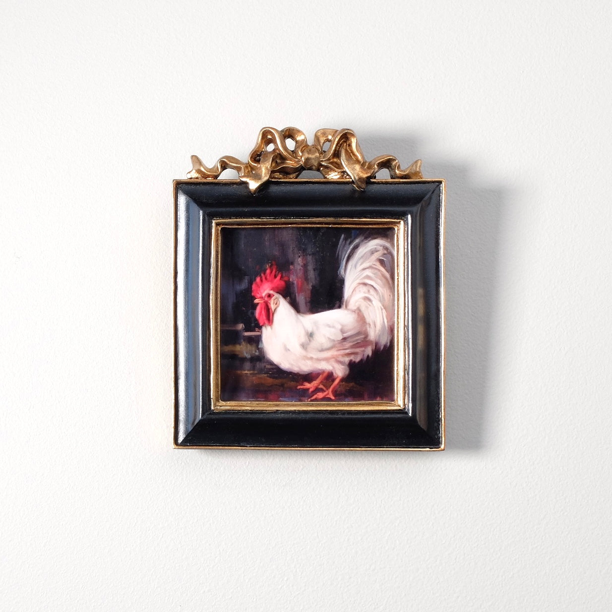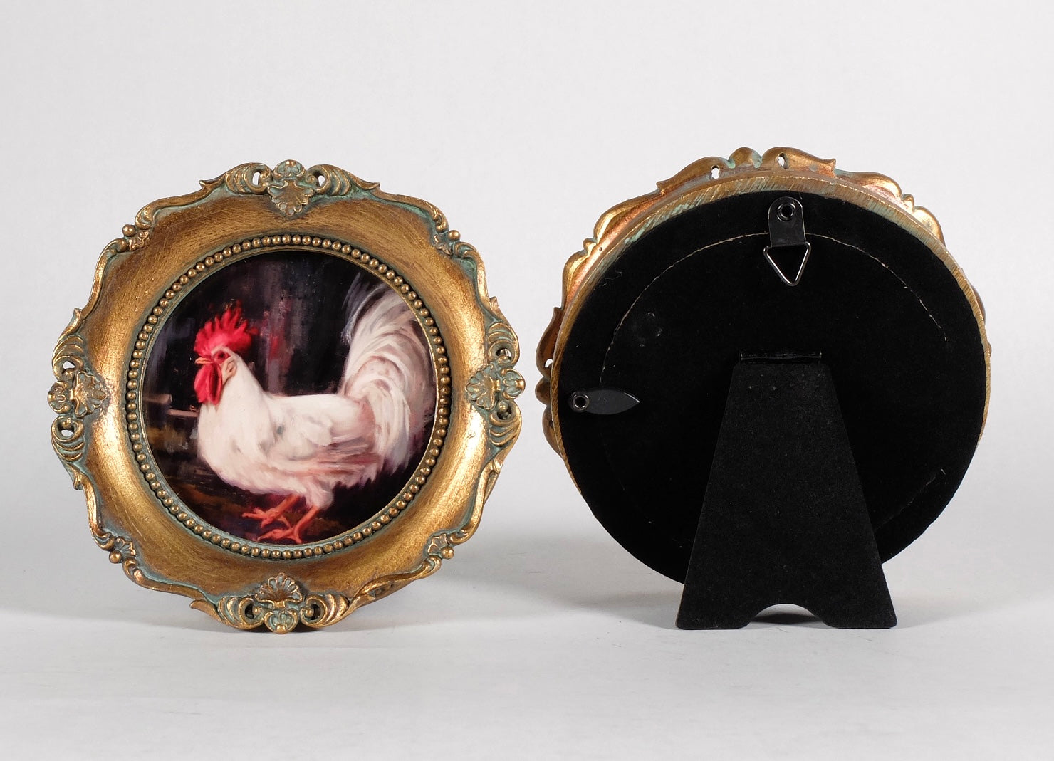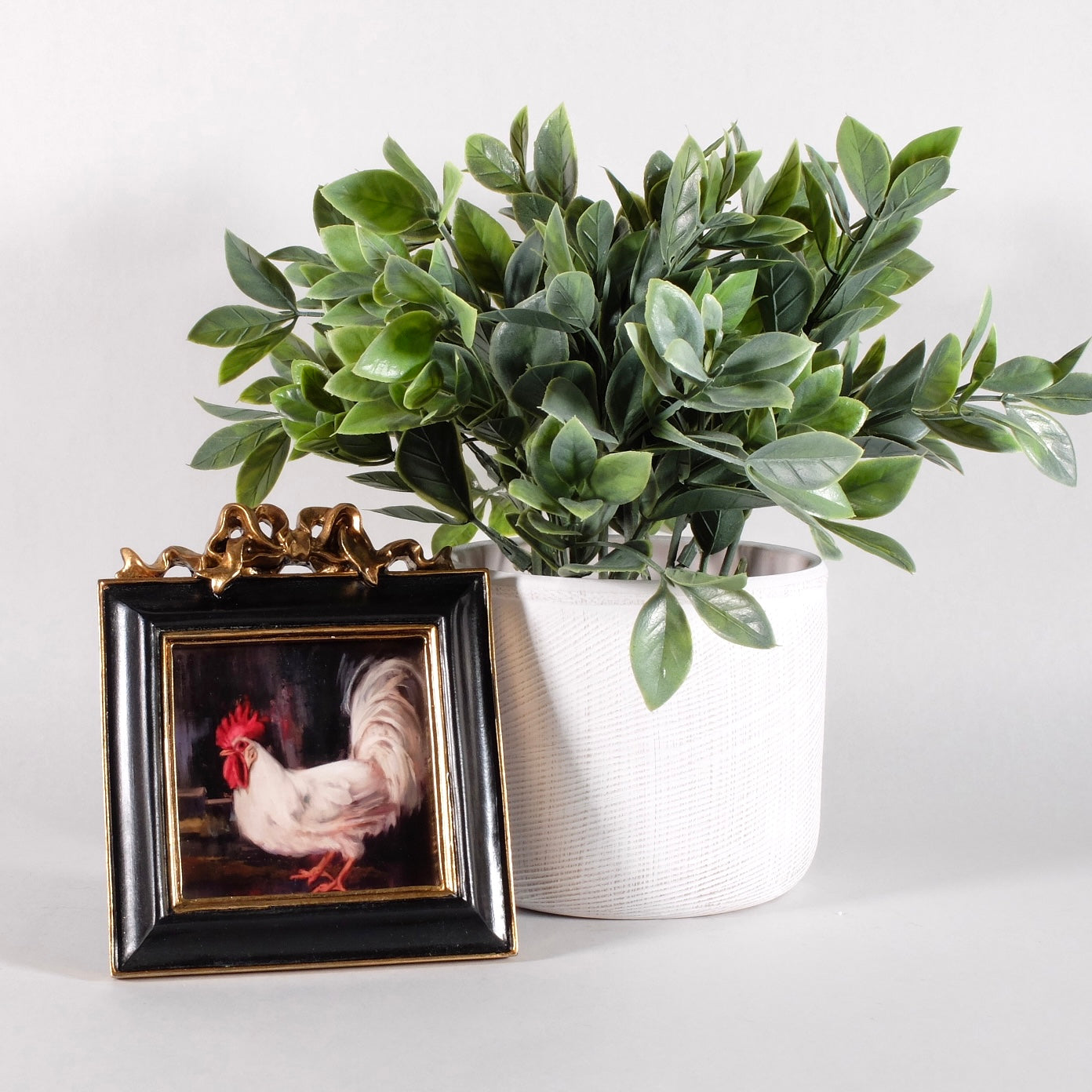 These mini framed prints are roughly 4"x 4" (varying slightly depending on the frame style). These can sit on a tabletop/shelf or can hang on a wall.