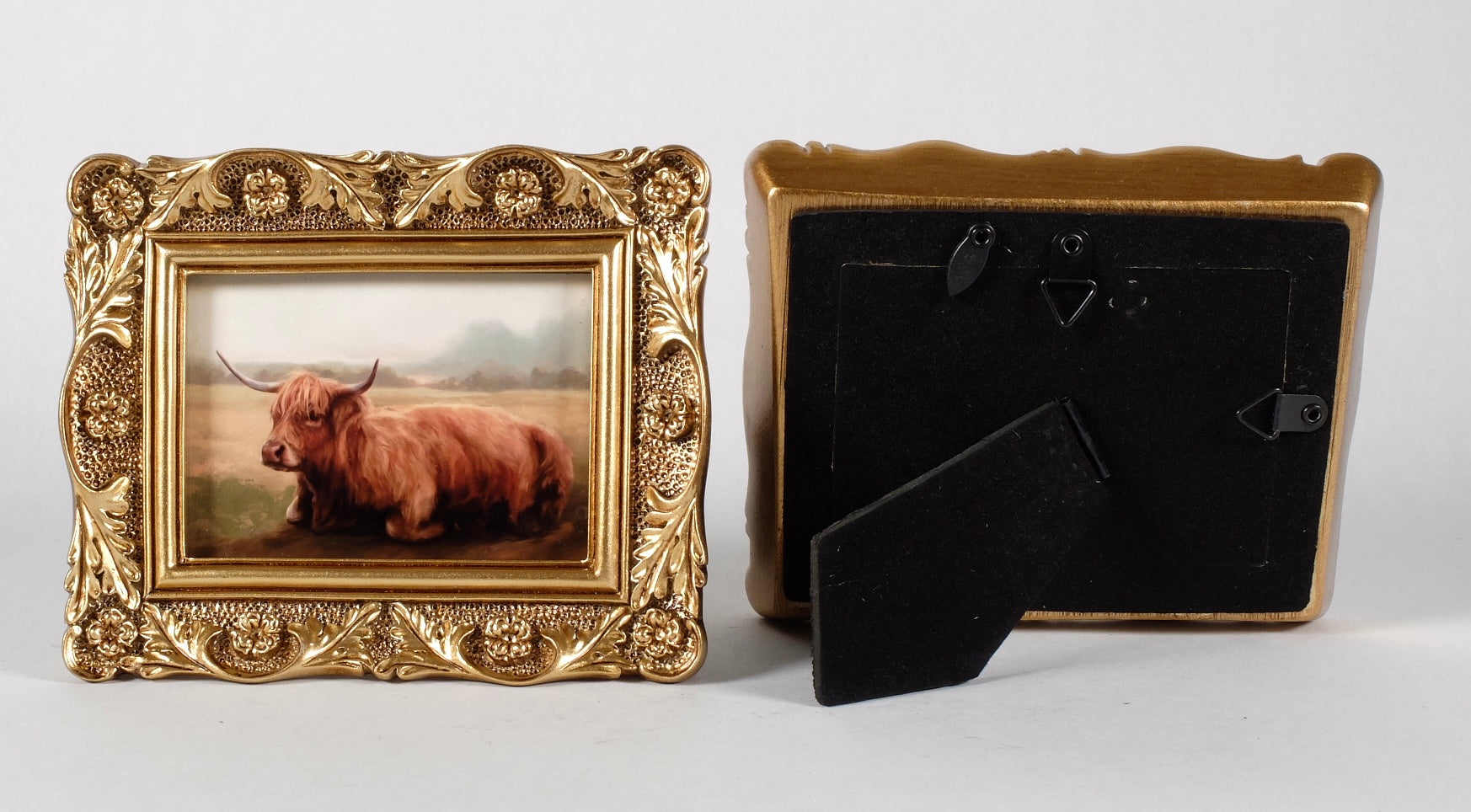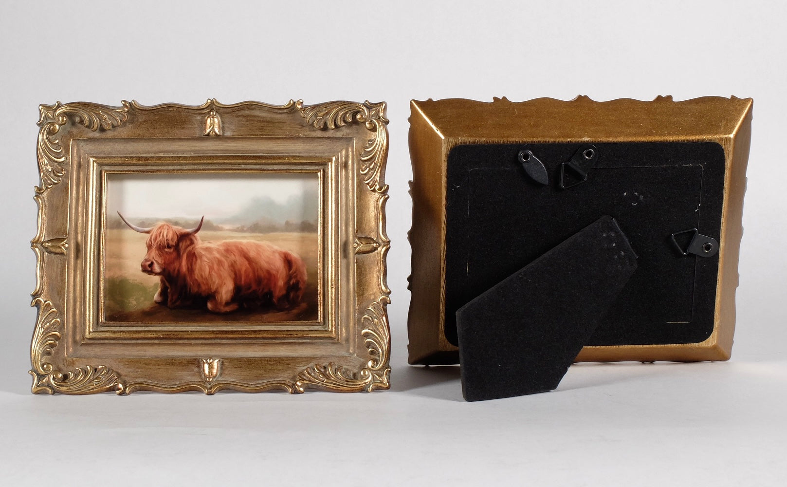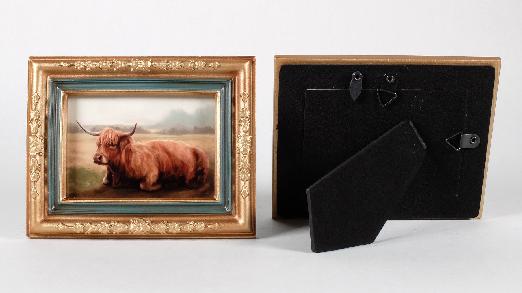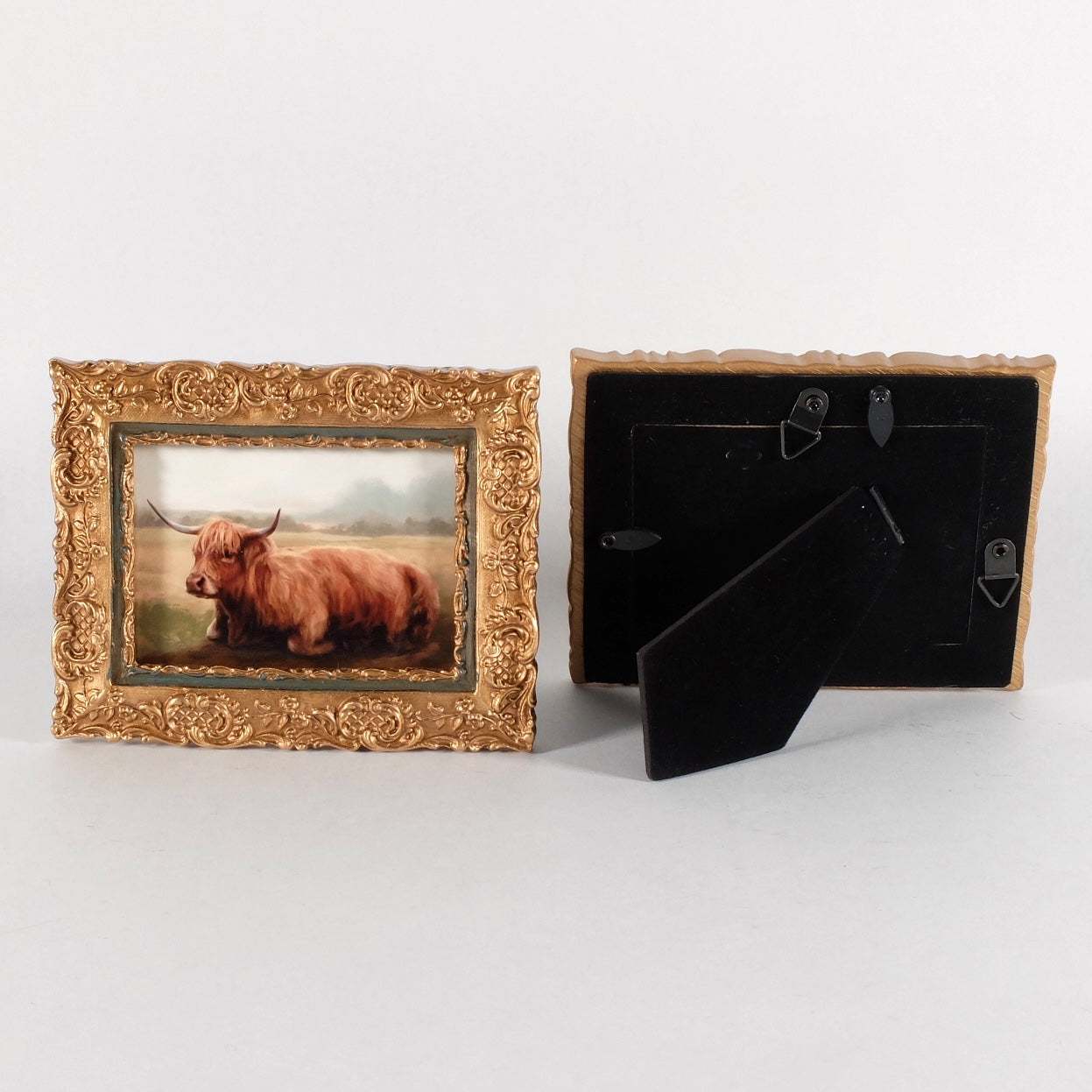 These mini framed prints are roughly 4"x 5" (varying slightly depending on the frame style). These can sit on a tabletop/shelf or can hang on a wall.
